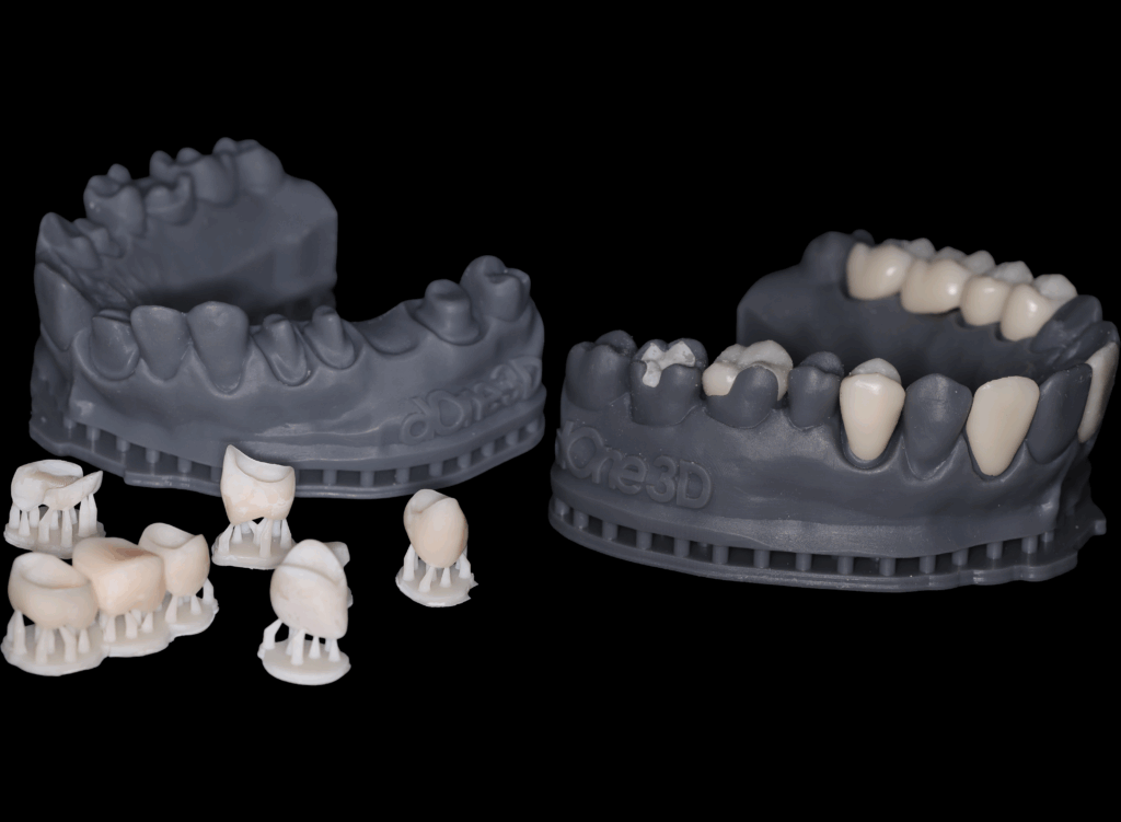 A impressão 3D permite criar coroas, pontes e dentaduras de forma mais rápida e barata. As próteses ficam mais ajustadas e confortáveis, economizando tempo e dinheiro para o paciente.